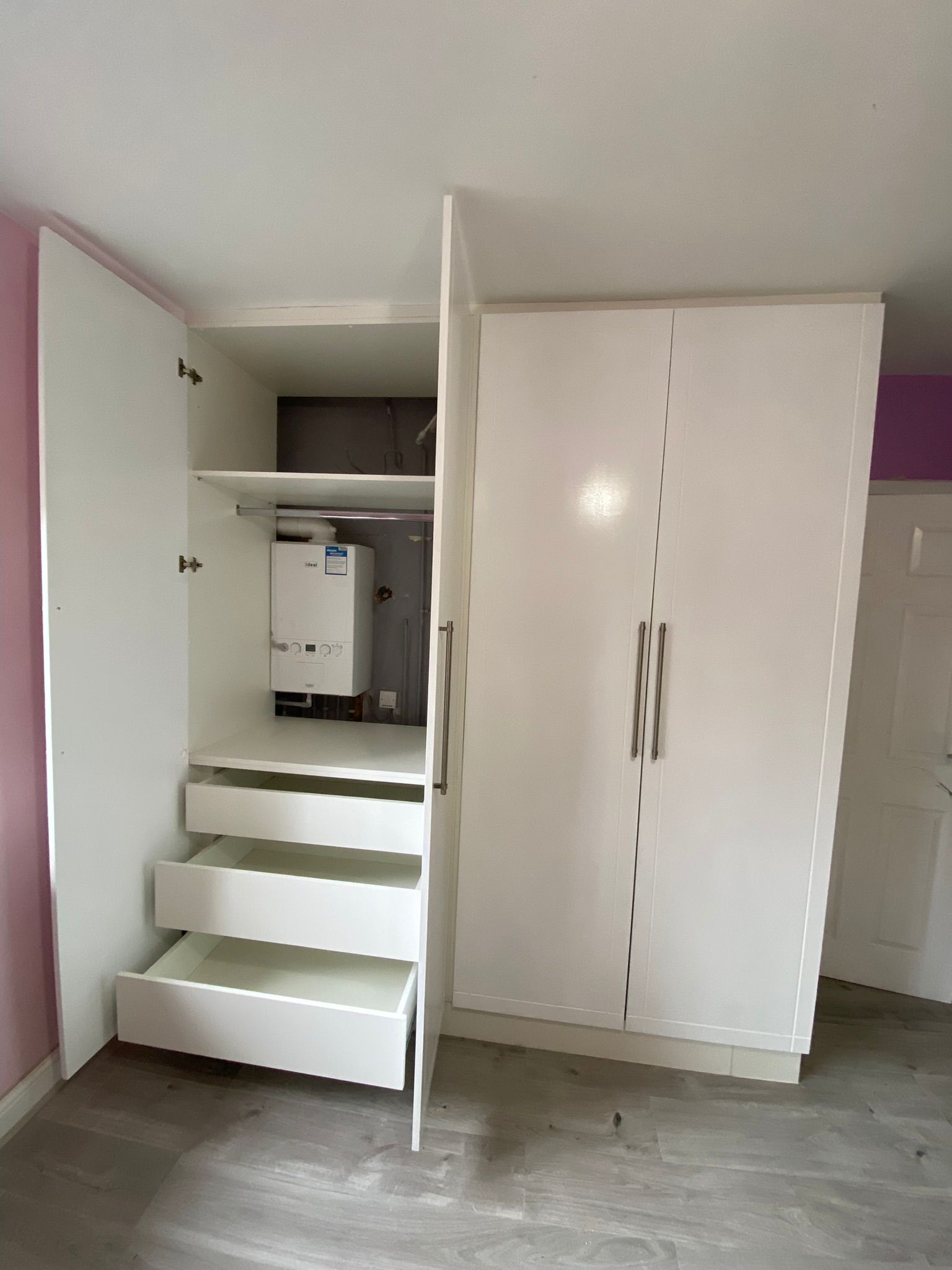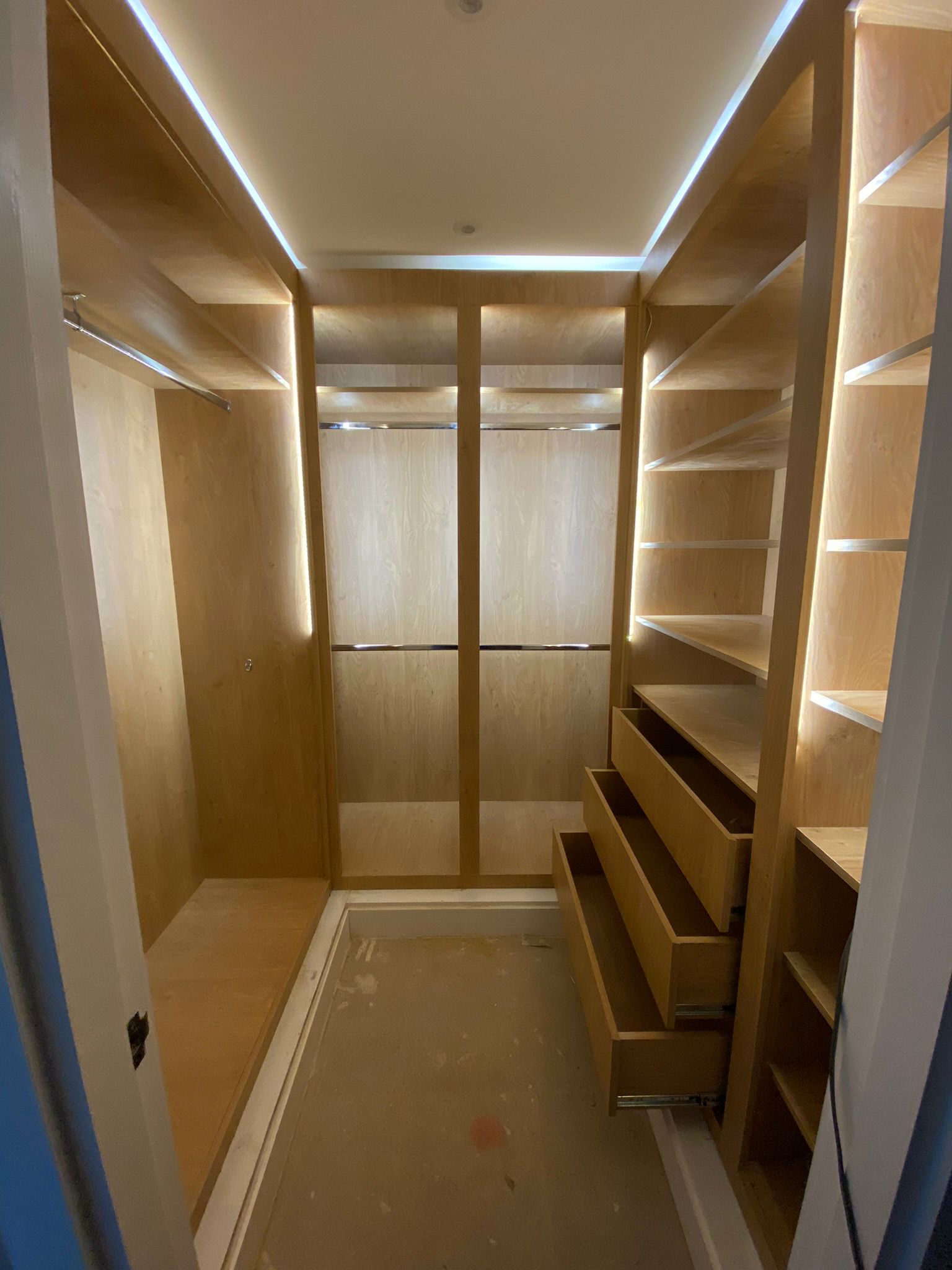 Our bespoke wardrobe fitting service combines intelligent design with precision craftsmanship to create storage that’s as beautiful as it is functional. Every wardrobe is custom-built to suit your space, lifestyle, and aesthetic preferences - whether you’re looking for a sleek, modern finish or timeless, classic detailing. We work closely with you to design a solution that maximises space and complements your home’s interior.